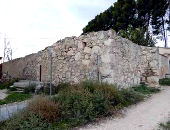 «…En el Valle de Villena son numerosos los casos de fincas privadas con una “ermita” o capilla en sus inmediaciones. Sin embargo son menos los casos en los que el edificio es anterior a la residencia, como ocurre con la antigua ermita de San Juan cuyos restos se ubican en la zona llamada el Camino de San Juan, en plena Huerta de Villena, en un pequeño promontorio alargado de unos 250 metros de longitud en el que hay varias viviendas residenciales y de uso agrícola. En uno de ellos llama la atención la existencia de un contrafuerte y dos muros de mampostería conectados a este. Los testimonios orales de los vecinos de la zona son dignos de tomar en consideración, pues revelan el hallazgo de restos arqueológicos de entidad. Desde la década de 1960 hasta bien entrados en 1990, este área estuvo en estado de ruina hasta que se amplió la zona de granja y se desbrozó la zona. Pese a que los restos eran visibles desde el camino, en el interior de la finca aparecieron restos óseos humanos en el interior de vasijas. Si bien, esto por sí solo no confirma la ubicación concreta de la ermita.
