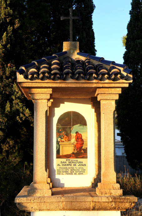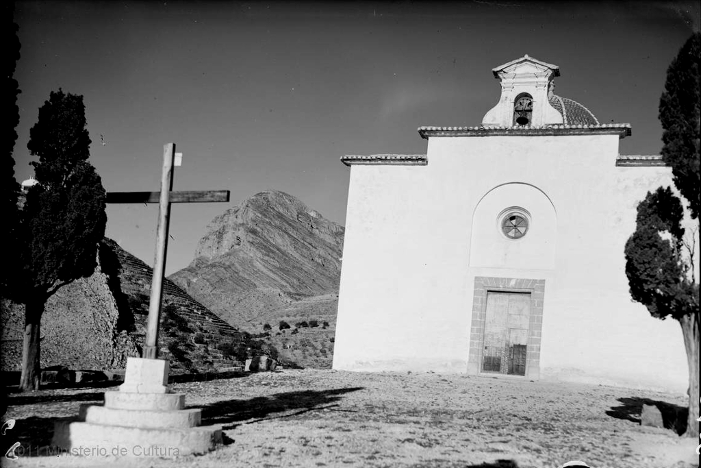 Citada por Madoz: “…a la parte Noroeste de este [pueblo] se forma una eminencia que tiene su raiz en la cordillera que desde el Mongó corre hasta el cabo de San Antonio: sobre ella existe el calvario y la capilla donde se venera la imagen de Jesús Nazareno. Todo el tránsito ó camino por donde se adora el Via-Crucis, está plantado de hermosos cipreses, presentando aquel recinto una vista agradable…”. (1)