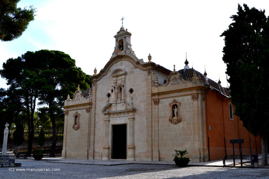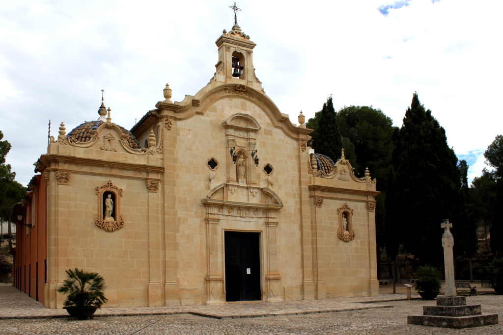 «…Santuario situado en la partida de la Tosquera, dista cosa de 1 km. de la población; se accede desde la fuente del Plátano, por el gran árbol que le da sombra, por un camino salpicado por los casalicios de un vía crucis que acaba en la ermita.