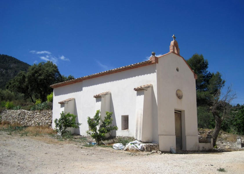 «…Ya en 1730 el nombre de Martín Belda figura referido a la heretat dels Capellans y a la heretat del Estret. En 1733 se especifica que Martín Belda tiene la heretat de les Monges, inmediata a la casa Navarro, en la partida del Estret. Se puede suponer que la ermita, que siempre fue considerada una construcción exenta, estuviera ya en funcionamiento.