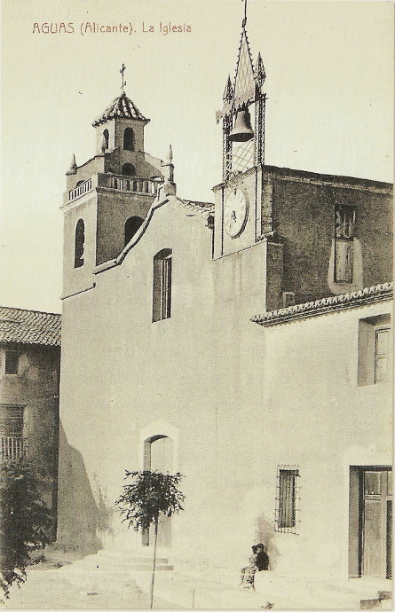 «…El nombre de Aigües ya aparece en 1179 en el Pacto de Cazorla que fijaba la frontera entre los reinos de Castilla y Aragón en una línea desde Biar a Aigües. También hay mención en 1244 en el tratado de Almizra, firmado por Jaime I de Aragón y el infante D. Alfonso de Castilla. En 1252, se crea, firmado por Alfonso X el Sabio, el concejo de Alicante en el que se engloba a Aigües. Con posterioridad Fernando el Católico elevó a Ciudad la Villa de Alicante y ratificó la inclusión de Aigües. No será hasta 1841 cuando el municipio de Aigües se segregue de Alicante.