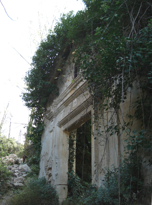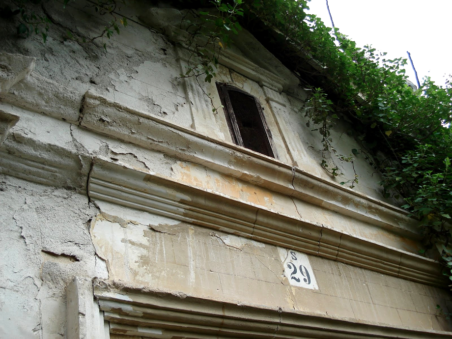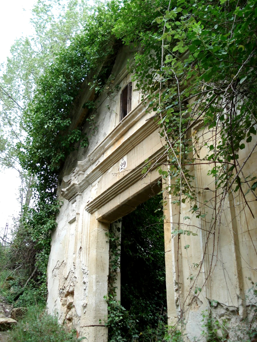 Vicedo Sanfelipe (5) dice, también, que fue edificada en 1840, sustituyendo a otra que se localizaba enfrente de la actual, pero en la orilla derecha del río. Sin embargo, hasta ahora, en esa ribera derecha del río, no se han encontrado restos de su existencia. La que subsiste, construida en 1840 y de la que apenas quedan la fachada y los bajos de las paredes, era de forma rectangular. La fachada, que es lo que mejor se conserva, tiene rasgos de estilo neoclásico. El vano de la puerta, dintelado, se enmarca por dos pilastras que sostienen un friso liso entre dos molduras. Sobre la superior, se apoya una hornacina con dos pilastras sosteniendo un frontoncillo triangular. La espadaña se sitúa en la pared posterior…». (6)