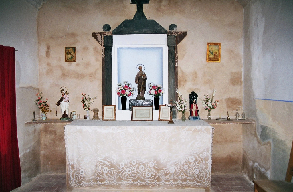 La ermita de Casetes de Mariola, de propiedad particular y hoy cerrada, es pequeña y muy antigua. Aquí se prestaba el servicio religioso a la partida. El familiar nombre de Casetes de Mariola evoca el pasado rural alcoyano. Hace unos ochenta años la vid era la plantación mas extendida en la zona, al año se producían unos cinco mil cántaros de vino. Desgraciadamente hubo de ser arrancada debido a una epidemia de filoxera. Esto daría paso al cultivo del cereal, girasol, frutales y olivos…». (1)