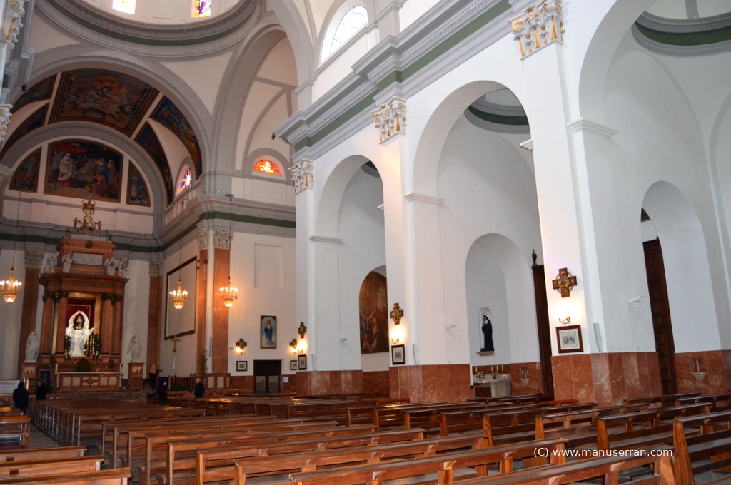 «…El anterior templo dedicado a Santa María, construido a mediados del siglo XVIII, de estilo barroco, fue destruido totalmente durante la Guerra Civil. Sobre el mismo solar se reedificó esta nueva iglesia. El 3 de abril de 1940 se colocó la primera piedra y el 19 de mayo de 1955, se procedería a su bendición e inauguración.
