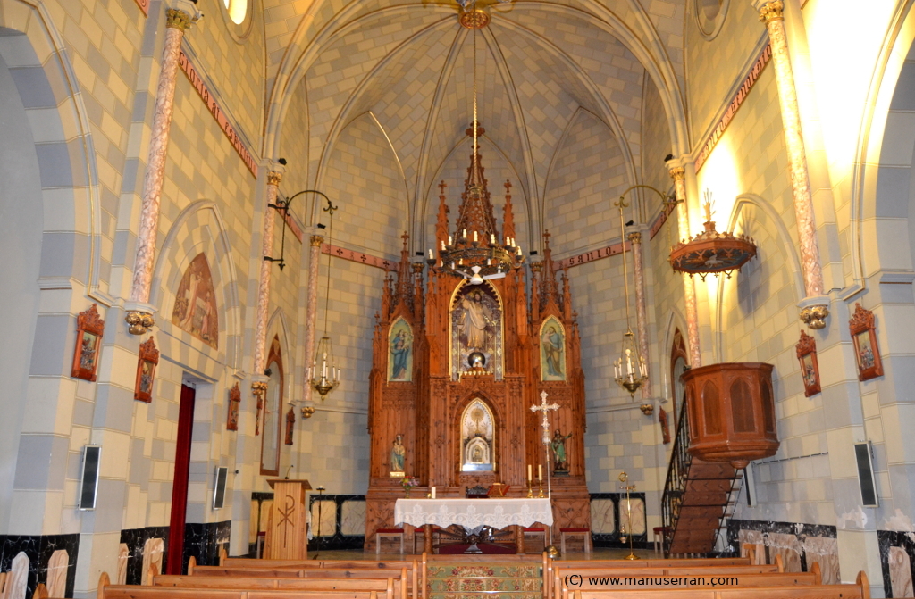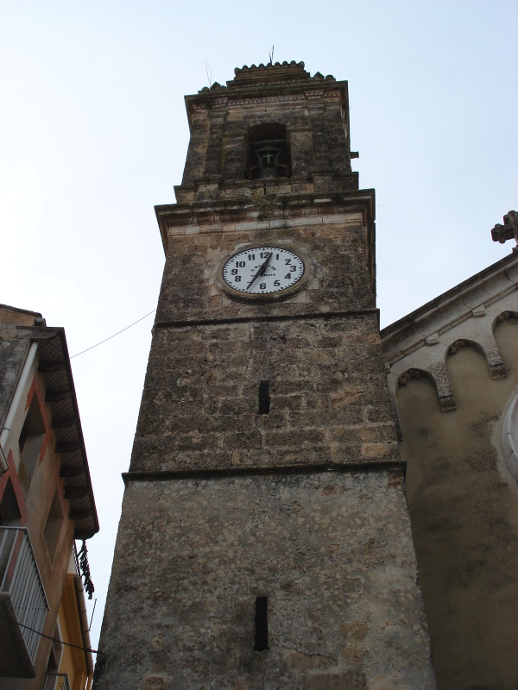 «…El templo posee una torre con tres campanas y un reloj en la misma. No posee reloj de sol. El edificio sufrió pocos desperfectos durante la guerra de 1936. Fueron reparados con posterioridad…». (4)