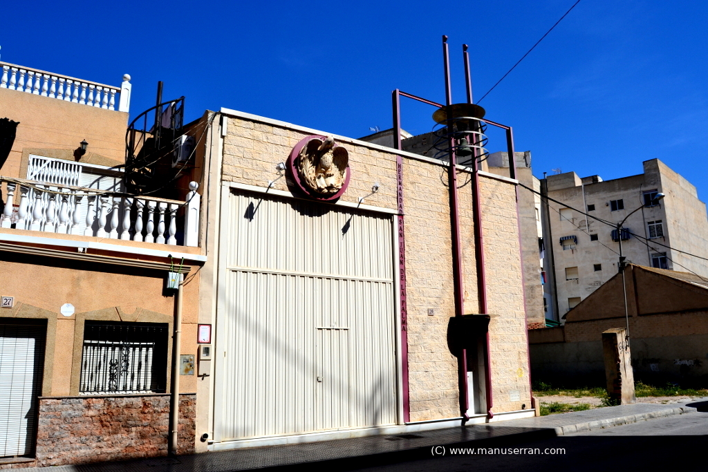 «…Situada en el número 29 de la calle Luís Buñuel, su construcción data del año 2004. Es la sede de la Hermandad de San Juan de la Palma constituida en 1944. De planta rectangular con cubierta plana. La fachada principal cuenta con dos partes compositivas, una ocupada por el gran acceso que permite la entrada del paso de Semana Santa. y la otra por un elemento semiescultórico metálico que conforma un campanario. Cuenta en la fachada con el escudo o alegoría del Evangelista. Alberga los tronos procesionales, enseres y las imágenes de San Juan de la Palma (José María Ponsoda, 1944) y Santa María Salomé (Ramón Cuenca, 2009)…». (1)