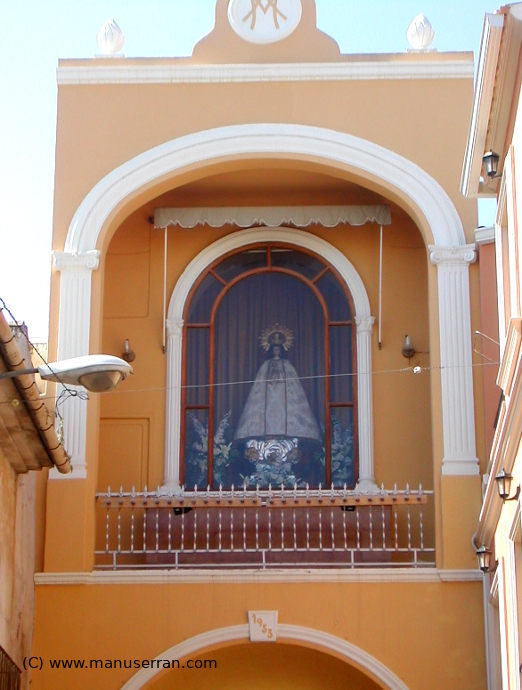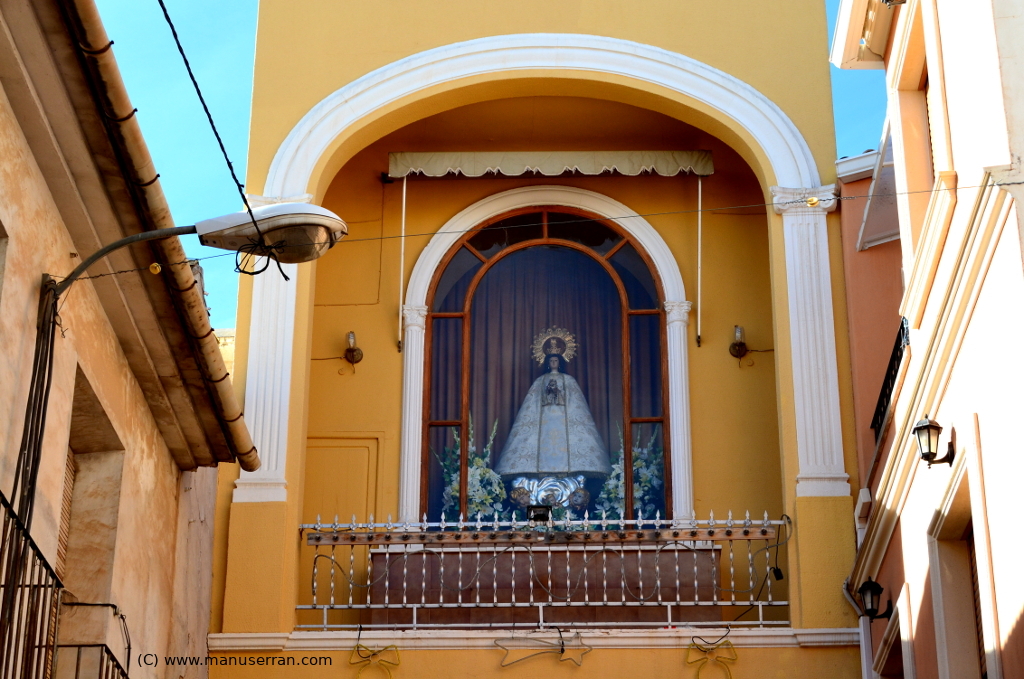 «…La calle Virgen de las Nieves se va a configurar al despuntar el siglo XVIII. A partir de 1730, los testimonios de vecinos residentes en esta calle son asiduos en testamentos y dotes, confiriendo a sus familiares viviendas o solares para edificar. Esta calle habilitó con prontitud una capilla bajo la advocación de Nuestra Señora de las Nieves en la que ofrecer culto a la Virgen, paralelamente a la devoción que se le profesa en la Iglesia de Hondón de las Nieves. La referencia más antigua la encontramos en un testamento que data de 1735. La capilla de la Virgen de las Nieves ha sido el culto instituido en una calle pública que mayor pervivencia histórica ha tenido en Aspe. El paso de los siglos ha originado transformaciones, pero la capilla sigue gozando de una gran devoción en la villa. La actual configuración de la capilla, que se encuentra sobre un arco bajo el cual transcurre el final de la calle, data del año 1953…». (1)