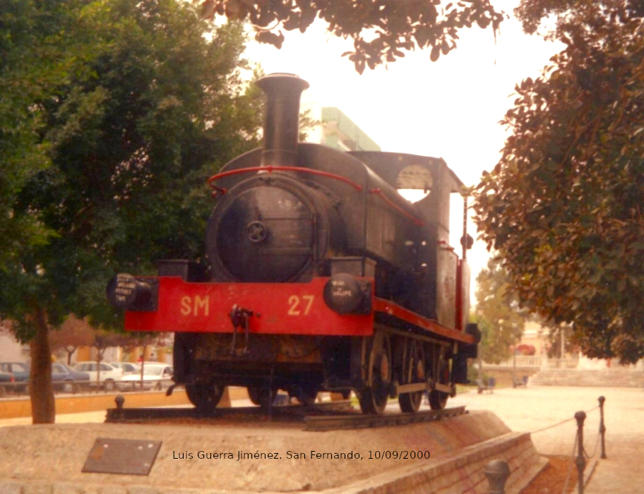 Nº de fca. 1822.- Construida en 1913, en BAHW recibió el número 125. En Anglo Spanish llevó el 7 que mantendría durante algún tiempo en el Santander-Mediterráneo hasta que le fue cambiado por el 27. Adquirida por la SGAE, prestó servicio en la Azucarera de La Puebla de Híjar y posteriormente en la de Monzón de Río Cinca, siendo designada en ambas azucareras como SM-27. En 1992 fue instalada en un parque público de la localidad gaditana de San Fernando.