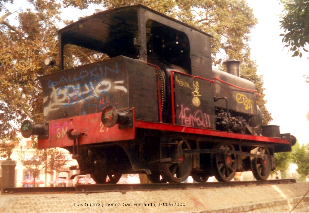 Nº de fca. 1822.- Construida en 1913, en BAHW recibió el número 125. En Anglo Spanish llevó el 7 que mantendría durante algún tiempo en el Santander-Mediterráneo hasta que le fue cambiado por el 27. Adquirida por la SGAE, prestó servicio en la Azucarera de La Puebla de Híjar y posteriormente en la de Monzón de Río Cinca, siendo designada en ambas azucareras como SM-27. En 1992 fue instalada en un parque público de la localidad gaditana de San Fernando.
