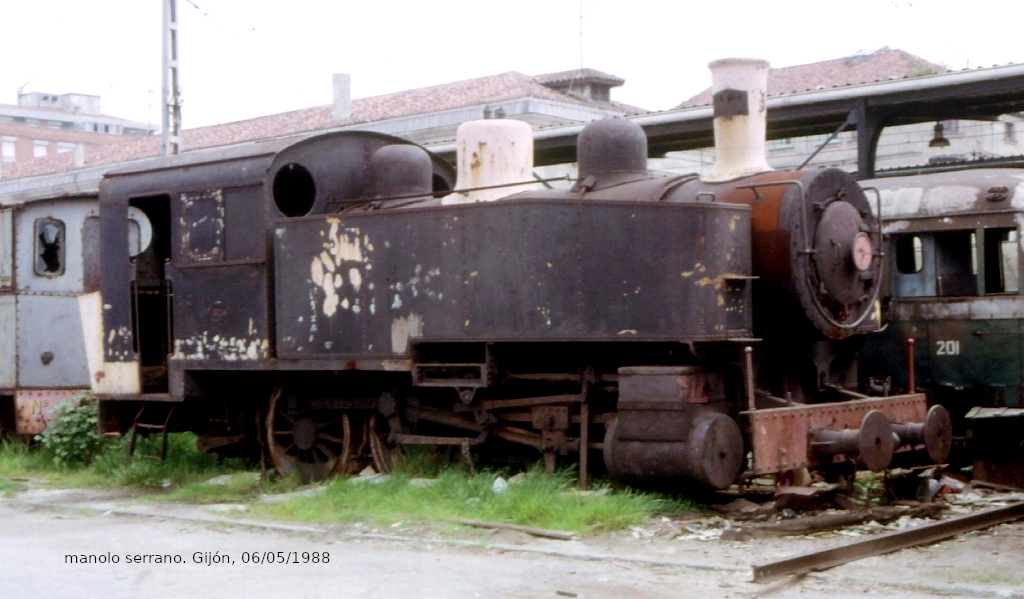 Nº 45. Fue cedida por FEVE a la Asociación de Amigos del Ferrocarril de Asturias que procedió a su restauración. En el verano de 1982, cuando se intentaba ponerla en funcionamiento, debido a la presión de la caldera, reventaron varios tubos de la misma y ante la falta de repuestos y otras dificultades, se abandonó el proyecto, apartándose en las inmediaciones de la antigua estación de RENFE, de Gijón, pasando posteriormente a depender del Museo del Ferrocarril de Asturias.
