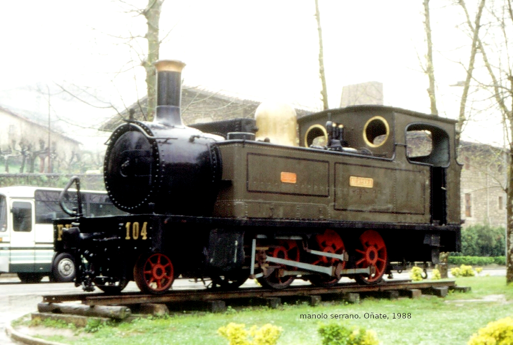 «Aurrerá». Número de fábrica 551, construida en 1898. Recibió inicialmente el número 1, posteriormente cambiado en Vascongados por el 104. A raíz de la electrificación de varias líneas de los Vascongados fue destinada al ramal Durango-Elorrio y más tarde a servicios de maniobras hasta 1958 en que fue dada de baja. Desde 1986 permaneció instalada como monumento en Oñate y por fin, en 1992, fue trasladada al Museo Vasco del Ferrocarril, en Azpeitia y puesta en funcionamiento. Actualmente es empleada en el remolque de trenes especiales y otros actos conmemorativos.
