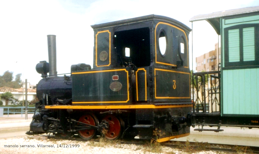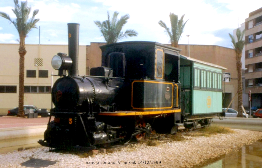 Nº 3. Cedida en 1978 al Ayuntamiento de Villarreal, fue instalada en un parque público de la localidad, próximo a los terrenos donde en su día se ubicaba la estación del ferrocarril conocida como “de dalt” y también por “l´estacioneta”. Forma composición con un coche de viajeros.