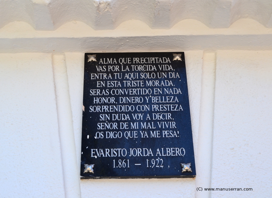 «…El antiguo cementerio de Bañeres, situado en la calle San Jorge en su confluencia con la calle de la Mateta, estuvo en servicio desde 1816 hasta el 26 de marzo de 1893. Los restos existentes en sus enterramientos permanecieron hasta 1977, fecha en que se procedió a su traslado al nuevo cementerio…». (1)