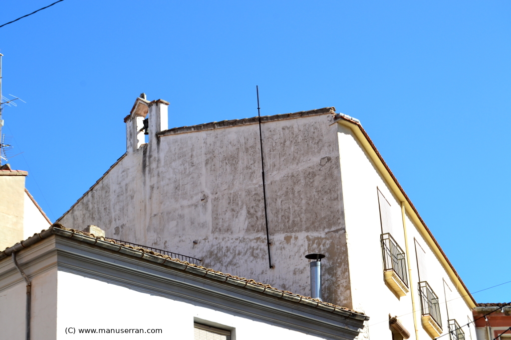Una frágil cornisa compuesta de una moldura corrida de tipo plano y una cubierta a dos aguas, coronan la construcción, rematándola con una espadaña con frontón triangular coronada por una cruz que tiene uno de los brazos rotos…». (1)