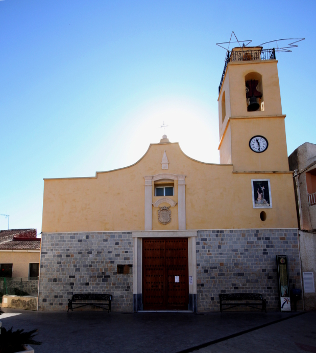 «…Desde 1470 existía una ermita dedicada a Santiago el Mayor, erigida por el señor de la población, Jaime Rocamora. Por amenazar ruina este templo fue reemplazado por otro, que Jerónimo de Rocamora y Tomás, VII Señor de Benferri, barón de la Puebla de Rocamora y primer marqués de Rafal, a su vez, dedicó a San Jerónimo doctor de la Iglesia. Las obras de la actual iglesia parroquial comenzaron en 1618 y concluyeron en 1622. De estilo renacentista tardío, consta de tres naves, una central y dos laterales, que acaban en una airosa cúpula adornada con diferentes pechinas a los lados. Destaca del conjunto una pequeña torre con vidrieras que iluminan el centro de la Iglesia. En una de sus naves, una preciosa imagen de la Virgen del Rosario, patrona de la localidad…». (4)