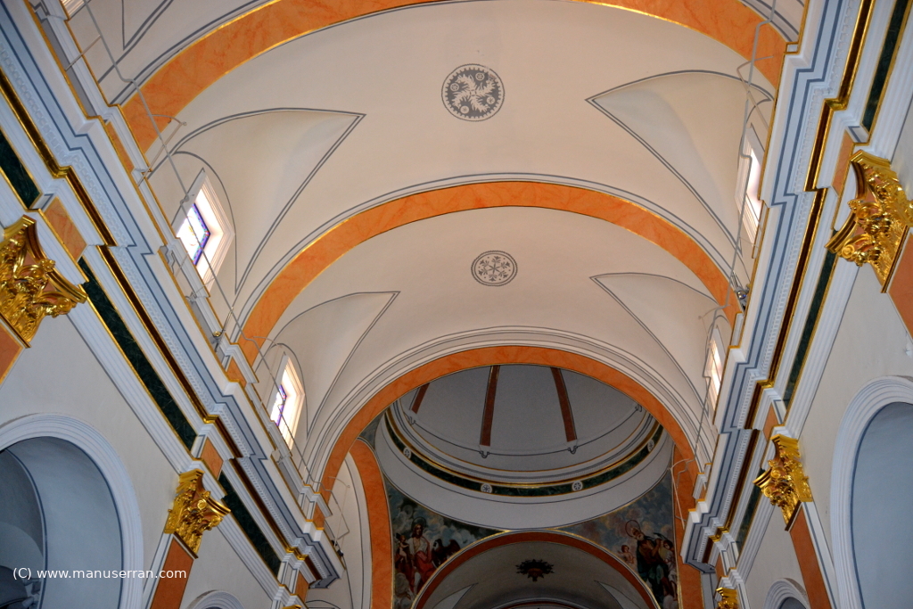 Siguiendo la espaciosa nave, al llegar al cruce, nos encontramos con un atrevido cimborrio que descansa sobre ambos pilares, dando un aspecto majestuoso al edificio.