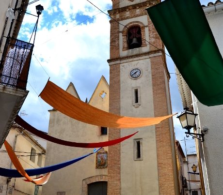 «…BENIJOFAR: Lugar con ayuntamiento en la provincia de Alicante…, situado en terreno montuoso, que le proporciona una ventilación libre y clima bastante sano, no sintiéndose mas que dolores de costado y algunas tercianas de poco tiempo á esta parte. Tiene 80 casas, que forman tres calles y dos callejones con su plaza espaciosa y cuadrada, donde se halla la casa señorial, de bastante capacidad y agradable perspectiva, y una iglesia parroquial (Santiago Apóstol), servida por un cura de patronato del señor territorial y colación del ordinario…». (2)