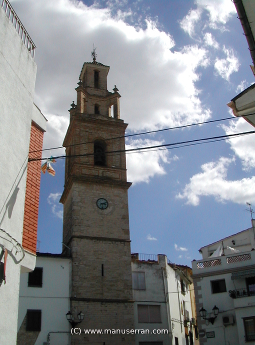La parroquia de este lugar fué rectoría de moriscos desde 1535, Desmembrándose de Gorga, para erigirse en independiente, con la advocación de Santa Ana, y constaba entonces de 20 casas habitadas por moriscos, anexionándosele los lugares de Benillup y Albacar, […] de nueve y cuatro casas respectivamente, debiendo sus habitantes ir a misa los días festivos a Benimarfull. Hoy es curato de entrada y tiene 900 habitantes y el mismo titular. El actual templo es de orden compuesto, con nueve altares y una magnífica capilla de Comunión, recientemente restaurada. Hasta 1663 no estuvo reservado el Santísimo Sacramento, cuya fiesta se hizo el 25 de julio, continuando celebrándose hasta hoy en la misma fecha y tres días siguientes con las del titular, el patrón Santiago y el Santísimo Cristo de la Buena Muerte, cuya imagen de bastante antigüedad, es muy venerada. Hay un Salvador de Juanes en el tabernáculo del altar mayor, y son dignos de mención dos relicarios, una Vera Cruz y un nuevo Viril…». (3)