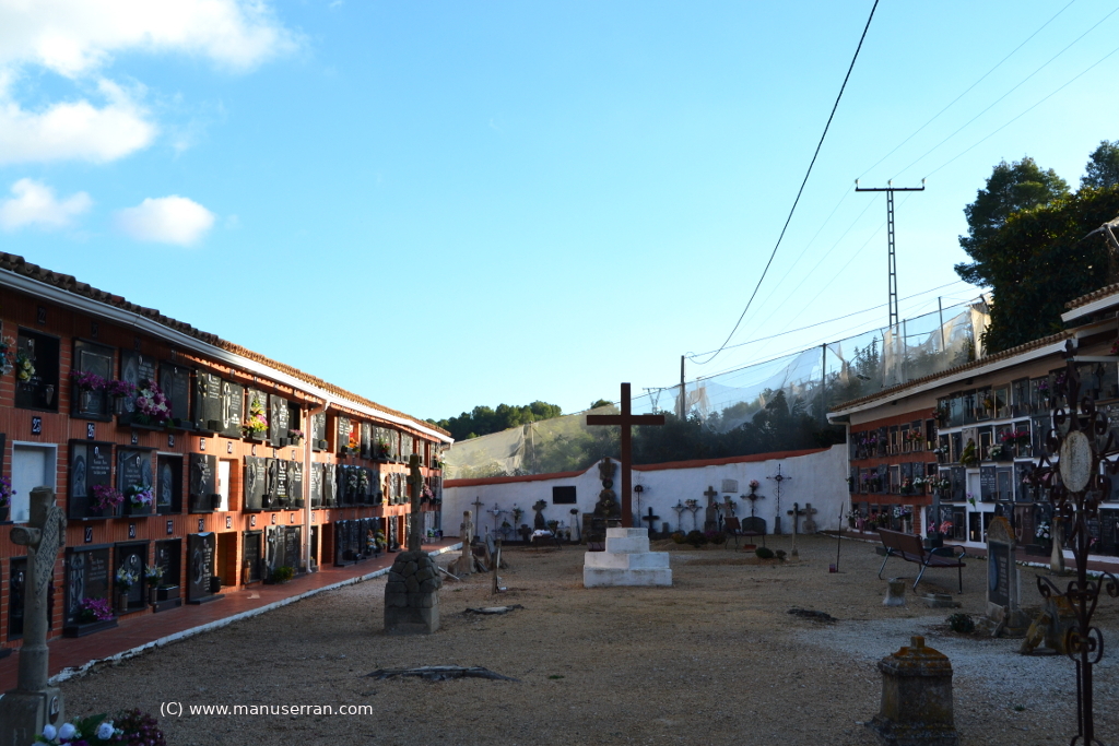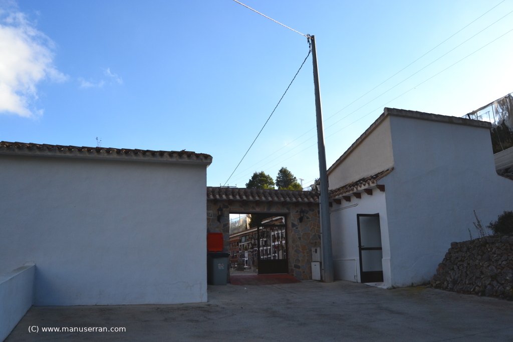 El cementerio se sitúa a poco más de 700 metros al Sur del núcleo urbano, próximo a la carretera CV-715 que conduce a Callosa d’Ensarriá. Según un mosaico que figura adosado a la entrada, parece ser que su construcción data de 1904.
