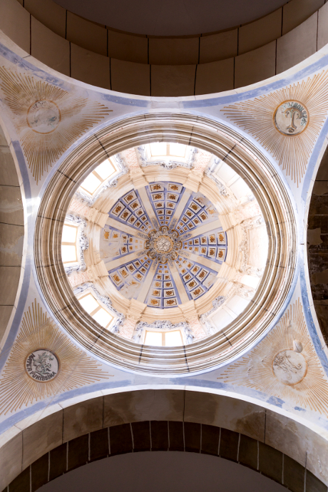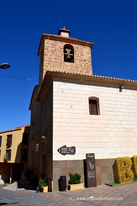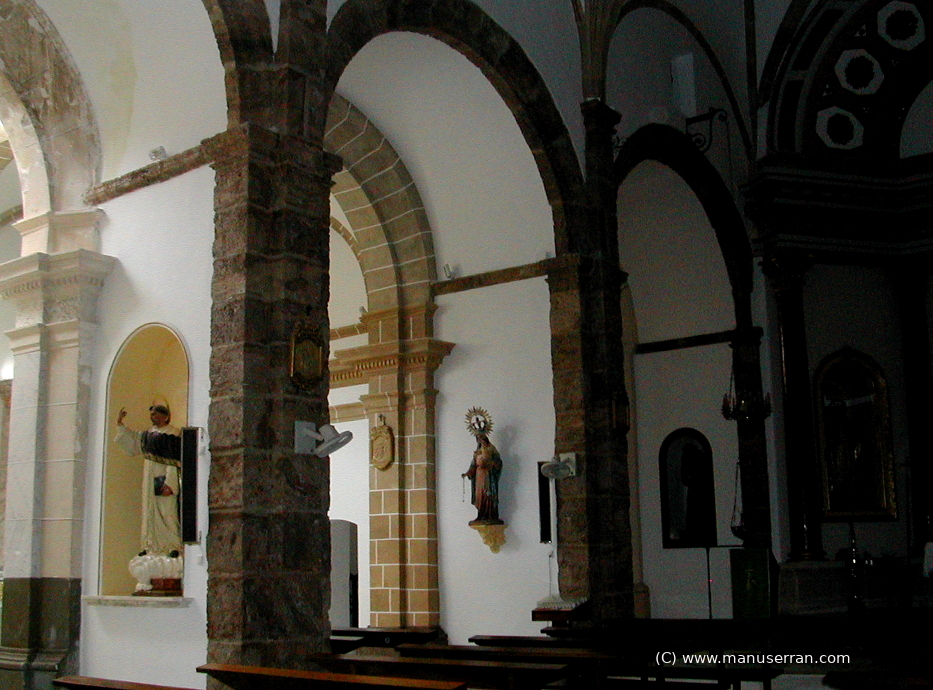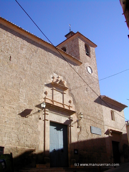 «…Iglesia emplazada en el centro del núcleo urbano. El acceso se produce desde el ensanchamiento del viario, de tal forma que, con el lateral del edificio, se configura una plaza civil en la que destaca el ayuntamiento. La iglesia es de planta rectangular, con capillas laterales entre contrafuertes. En el interior aparecen dos cúpulas. La menor, de planta circular, se desarrolla sobre pechinas y tambor, situándose en uno de los brazos del transepto, en la capilla de la Comunión. En el crucero está la cúpula mayor, también resuelta sobre pechinas y tambor. La fachada principal, levantada con una fábrica de sillares no careados, se resuelve mediante un plano desornamentado en el que destacan dos elementos. Por un lado la portada, ejecutada con sillares, donde el hueco de acceso se enmarca entre dos pilastras que sostienen un entablamento. Sobre éste se desarrolla una composición templaria con dos pilastras que dan lugar a un nuevo entablamento que esta vez sostienen un frontón triangular. El otro elemento singular es la torre, de planta cuadrada, rematada con una cubierta a cuatro aguas y que presenta huecos que marcan ligeramente una forma de arco de herradura…». (4)