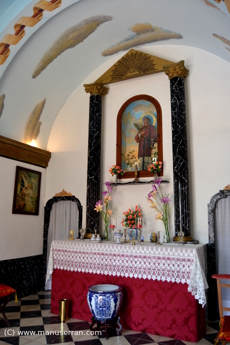 Ermita particular en la partida de Mosmai, que ocupa parte de la planta baja de un gran caserío, que se distingue en el entorno por su llamativo color almagre.