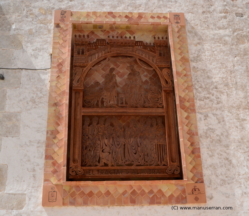Creemos indudable que Campo de Mirra está emplazado en el lugar que estuvo el castillo del Almizra y su población, donde, en 24 de marzo de 1244, se firmaron las paces entre D. Jaime y su yerno, el infante de Castilla, que después fué Alfonso X, a la vista, dice la Crónicadel Conquistador, entre Almiçra e los Capdets hon ell (el de Castilla) será tendat e nos (D. Jaime) a Almiçra. Pretendía el de Castilla se le diese Játiva, por dote de Dª Violante, alegando que así lo había prometido el de Aragón al darle en matrimonio a su hija, a lo que se negó D. Jaime rebatiendo los motivos de la pretensión. Llegaron a romperse violentamente las negociaciones, mas los ruegos y lágrimas de la reina aplacaron la indignación del Conquistador, continuando las conversaciones que dieron por resultado el tratado conocido con el nombre de Almizra. El relato que de este hecho hace el Rey en su Crónica es hermosísimo y retrata admirablemente el temple de aquel carácter de hierro cuando le asistía la verdad y la justicia.