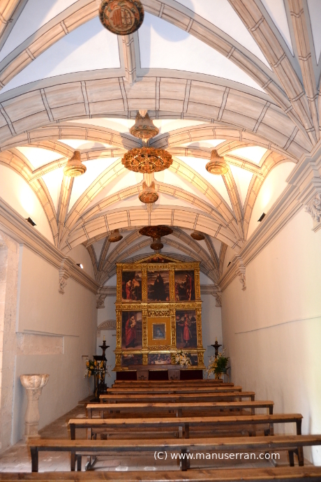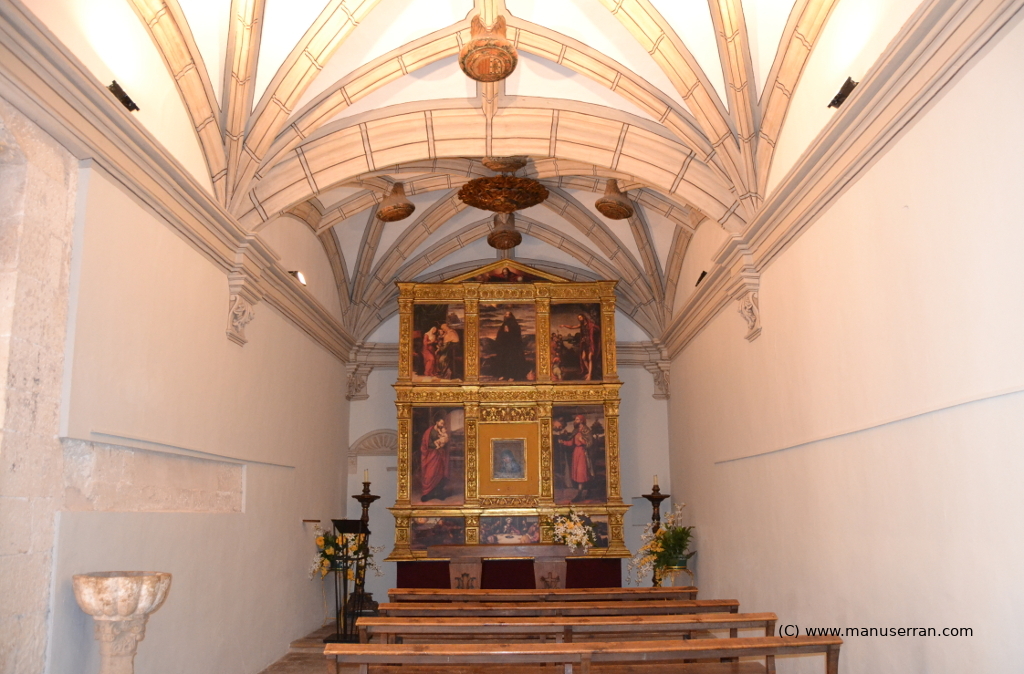 «…Se ubica en el Palacio Condal, a nivel de planta baja, accediéndose a ella desde el patio. Debió ser construida en la misma fecha que el Palacio Condal, es decir en la segunda mitad del siglo XIII. En el siglo XIV, tanto la capilla como el palacio, fueron restaurados por la familia de los Corella.