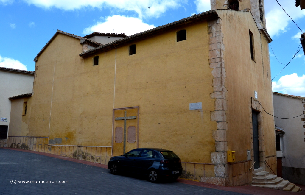 La iglesia de Confrides es antiquísima, pues su rector asistía a los sínodos celebrados en Valencia en el siglo XIV. Al pie de un castillo, cuyas ruinas se conservan, y donde se han encontrado restos de cerámica y urnas cinerarias, existió un poblado llamado Aljofra […], el cual perteneció a la parroquia a principios del siglo XVI, aunque también fué regentado por el rector de Beniardá en 1626 y cuyos habitantes se trasladaron a Confrides después de una epidemia que diezmó el vecindario: de dicho poblado no queda resto alguno. En la actualidad cuenta con el anejo Abded y los despoblados Florent y Benisicli de los que no queda ninguna huella, como tampoco de una ermita dedicada a San Antonio de Padua, situada en la partida Ritana, la que existía aún en 1773. […]