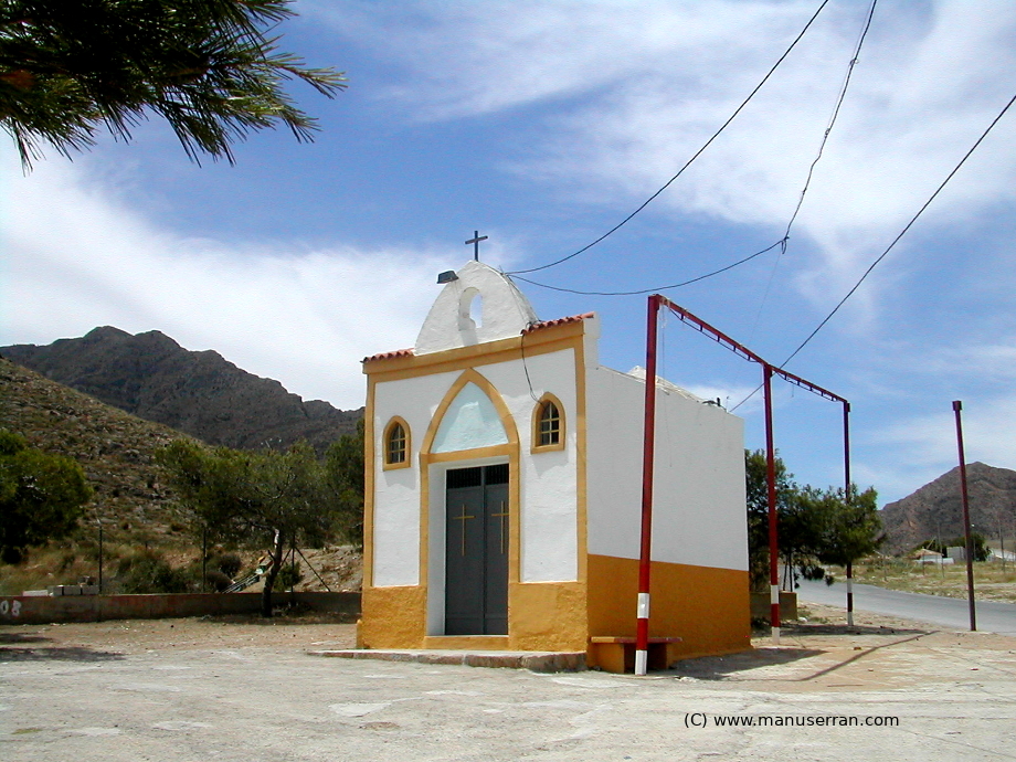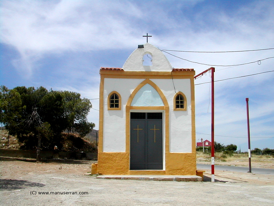 «…Su construcción podría datarse hacia 1950. Se trata de una ermita pequeña, de tipo cajón, con tejadito a dos aguas de teja plana. Fachada realzada por una espadaña en ojiva, forma geométrica que se repite en un arco fajón que adorna la puerta y dos ventanitas laterales a la misma. Revestimiento en estuco blanco salvo zócalo, cerco de la fachada y arco ojival en color de vino tinto…». (2)