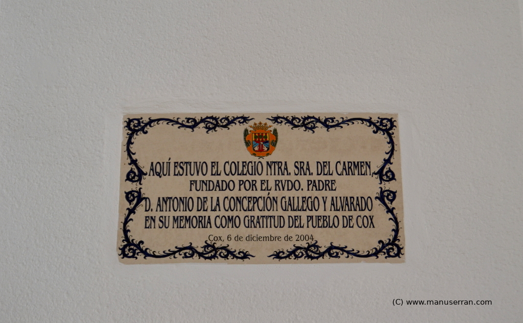 «…La implantación en el edificio conventual del colegio de huérfanos del entrañable padre Antonio, a principios del siglo XX, y su posterior uso como ayuntamiento, son páginas de la historia reciente del convento de Cox…». (4)