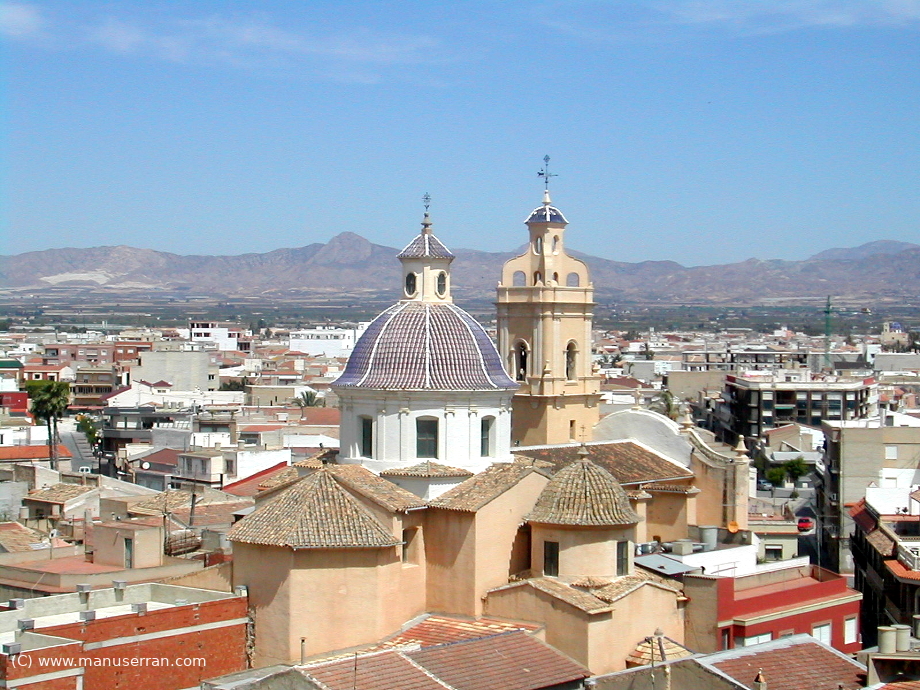 «…COX: Lugar con ayuntamiento de la provincia de Alicante, partido judicial de Dolores…, diócesis de Orihuela: Situado en la huerta de esta ciudad y faldas septentrionales de la sierra de Callosa donde le combaten los vientos del Este y algunas veces los del Sur, con clima templado y sano, pues no se conocen otras enfermedades que las estacionales. Tiene sobre 320 casas bastante decentes, las cuales alternan con varios jardines de palmeras, naranjos y otros árboles frutales, y se distribuyen en calles por lo común llanas y regularmente espaciosas; dos plazas una llamada Mayor y de San Juan, y dos plazuelas algo reducidas; casa capitular y cárceles de propiedad del señor territorial (hoy dia la señora duquesa de San Fernando), un palacio antiguo del mismo, otro moderno construido por el difunto obispo D. José Toreno, una escuela de niños á la que concurren 50, dotada con 1,500 reales, otra de niñas con 48 de asistencia y 800 reales de dotación, y una iglesia parroquial (San Juan Bautista), de primer ascenso, servida por un cura de provisión real ó del ordinario, según el mes de la vacante en riguroso concurso. Fué construida en el año 1776 por el famoso arquitecto Miguel Francia, á espensas del referido señor obispo Toreno, según se lee en una piedra colocada en la fachada de la misma iglesia, el cual la consagró en 1778 con solemnidad y pompa estraordinaria. Es un edificio sólido de mucho gusto, todo de mamposteria, dividido en tres naves, hermoseándole estraordinariamente la uniformidad de sus altares, y su claridad por la elevación de su media naranja, con ocho grandes ventanas y adornada de varios relieves. La torre descansa en su mayor parte sobre una de las bóvedas de la capilla, lo cual es verdaderamente admirable, y prueba la mucha solidez de la fábrica, que no sufrió el menor deterioro en los fuertes sacudimientos del espantoso terremoto del 21 de marzo de 1839. Hubo un convento de P P. carmelitas calzados, en cuya iglesia se daba culto á la imagen de Nuestra Señora de las Virtudes de grande veneración en el pueblo, la cual se trasladó á la parroquia desde la supresión de aquel: el señor territorial es el patrono de dicha imagen como igualmente lo era de la iglesia del convento á cuyas espensas se hizo. El cementerio es bastante capaz, y se halla fuera del pueblo en un sitio ventilado… Antiguamente esta población estaba dividida en dos: Cox Viejo y Nuevo, existiendo todavía la casa consistorial del antiguo Cox, según los títulos que presenta el marqués de Albatera; fué comprado en 1600 por mosen Ruiz Dávalos por la cantidad de 50,000 sueldos á una tia María, vecina de Orihuela, quien lo obtuvo de Raes-Abdenaden. Consta por una bula de su Santidad que la feligresia del lugar de la Granja, fué separada de esta parroquia por motivo de no serle fácil, según dice la bula, al rector de esta parroquia, pasar á dicho lugar muchos dias festivos…». (1)
