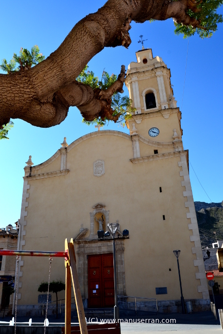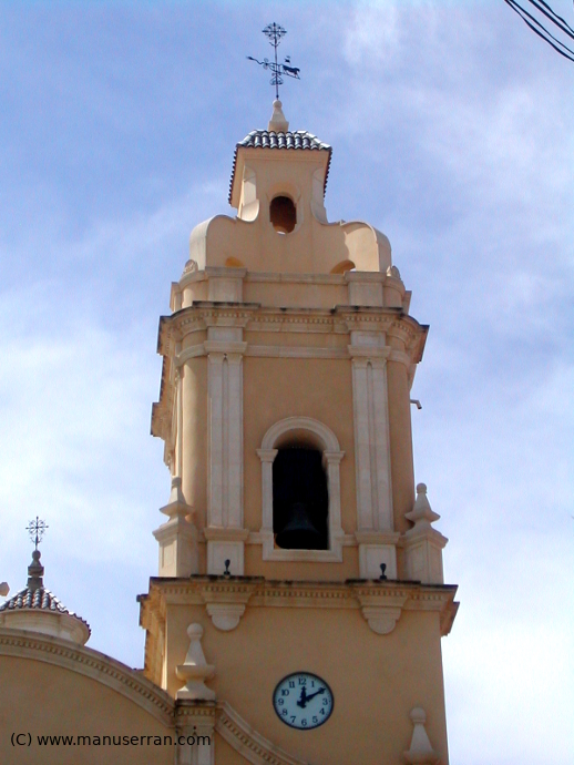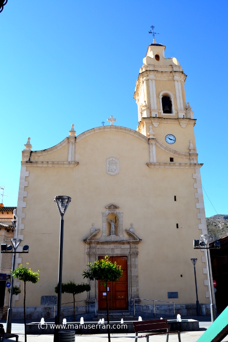 A esta descripción añadiremos lo siguiente: «…Se trata de un templo de nave única con planta en forma de cruz latina con capillas lateral comunicadas entre si. Se cubre con cúpula sobre pechinas con tambor y linterna en el crucero. El altar está cubierto con bóveda de media naranja y la capilla de la Comunión tiene planta en forma de cruz griega y se cubre con cúpula sobre tambor, iluminada por una linterna. La fachada se remata con una hornacina con la imagen del santo titular…». (3)