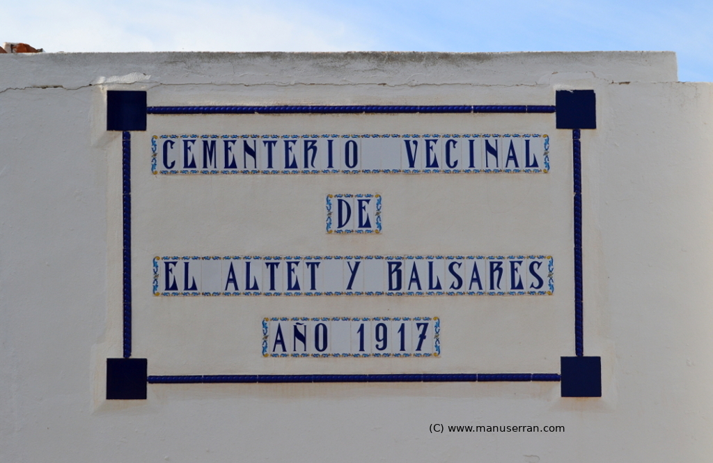 El cementerio común para las pedanías de El Altet y Balsares, se localiza en el término de El Altet, a un lado del Camino del Cementerio, carretera que desde El Altet conduce a la CV-851, que se dirige a Balsares.