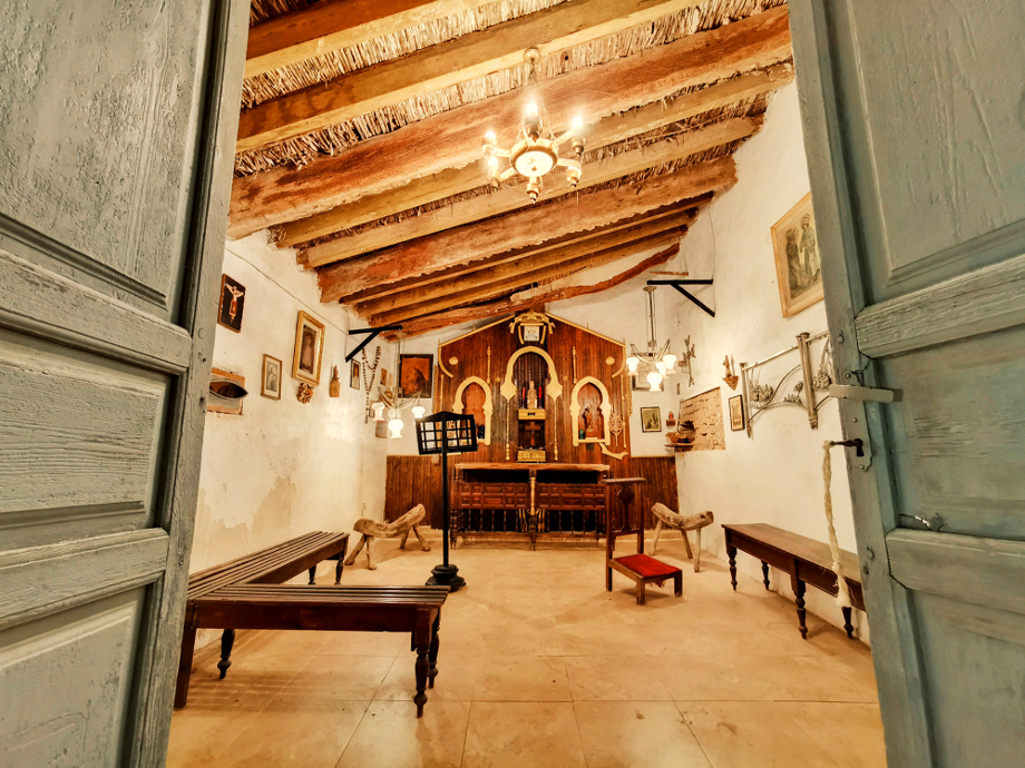 La capilla, tal como puede apreciarse en las imágenes, se encuentra en el interior del edificio principal, con acceso desde el exterior, habilitándose para la celebración de algunos eventos sociales de carácter religioso.
