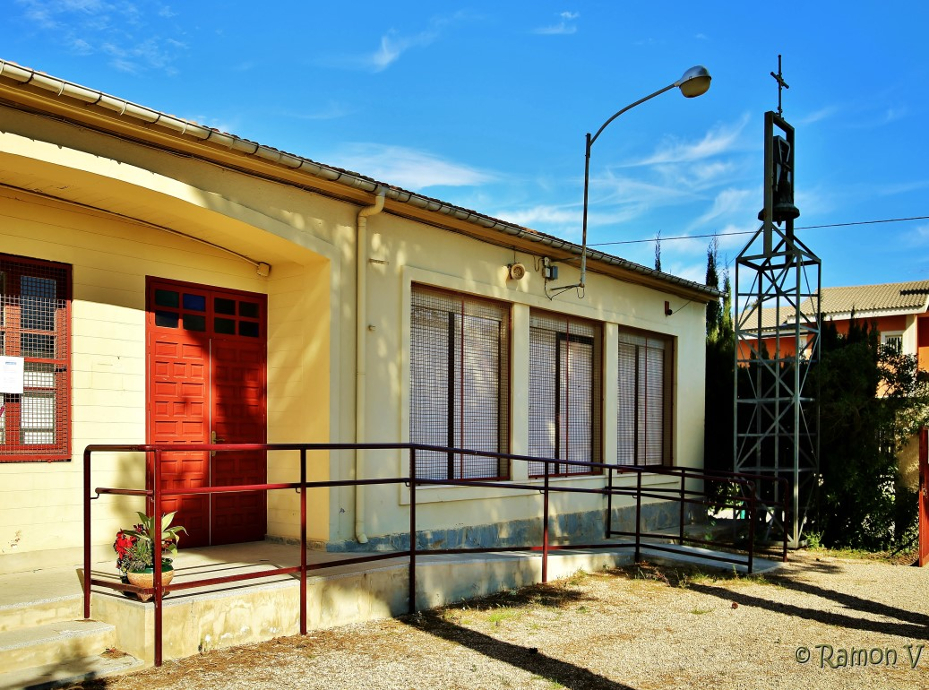 La escuela (en el momento de su apertura), constaba de dos unidades escolares con vestíbulo-guardarropa, aseos y despacho distribuido todo en planta baja. Disponía de una casa anexa destinada a dos viviendas para maestros de planta baja y piso. La planta baja disponía de comedor, sala de estar, cocina, cuarto de aseo y patio. En el primer piso se distribuían tres dormitorios. Actualmente, la escuela ha sido reconvertida con la construcción de un pequeño campanario adyacente a la Ermita de San Juan. Una de las viviendas (octubre de 2009), está ocupada por el conserje del cementerio y la otra, por la Asociación de Vecinos…». (1)