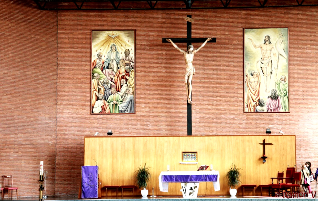 Es un volumen exento compuesto con un eje de simetría, con los paños frontales planos y los laterales quebrados en dientes de sierra. Estos planos reinterpretan en el interior las capillas mediante una secuencia de plano opaco y plano de luz. En el exterior están valorados como planos independientes, desfasados en las aristas y con un tratamiento alternativo de celosía y de ladrillo que, con las sombras, desmaterializan el volumen. El interior es diáfano y con la secuencia de planos de ladrillo a contraluz hace que se perciba como un espacio unitario pero con muchos matices…». (2)