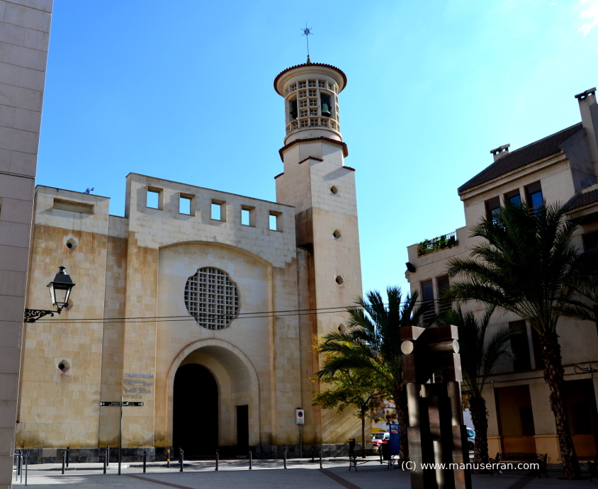 Reproducimos parte de la amplia descripción que del templo hace Ibarra y Ruiz: «…De la Iglesia de San Juan Bautista ya conocemos su origen. Mezquita en tiempo de los loros, bendecida y habilitada para templo católico en 1526, siendo construido el actual edificio en virtud de Decreto expedido por el duque de Maqueda D. Bernardino de Cárdenas, y terminado, se bendijo bajo la advocación de San Juan Bautista, en la mañana del 24 de Junio del año 1601, por el Ilmo. Sr. D. José Esteban, Obispo de Orihuela. En aquel entonces solo asistía en dicha iglesia, un sacerdote que celebraba misa los domingos y días festivos, bautizaba y ejercía los demás actos de su ministerio, sin facultades ni título de párroco. Así se mantuvo hasta que por Bula apostólica de Clemente VIII, expedida en Roma junto á San Pedro, el 28 de Mayo de 1602, fué erigida en Rectoría ó Curato, siendo su primer cura, por riguroso concurso sinodal, D. Andrés Maciá. Yacen sus restos en el plano de la iglesia, á la entrada de la Capilla de la Comunión.