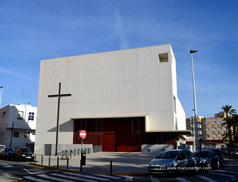 La primitiva iglesia estaba situada en la calle Jaime Pomares Javaloyes. El desarrollo urbanístico de esta partida de Elche, integrada actualmente en el casco urbano y el incremento de habitantes en la zona, propiciaron que, dadas las reducidas dimensiones del templo, a partir de 2006 se decidiera la edificación de uno que fuera capaz de acoger a la nueva feligresía. Su promoción corrió a cargo del Obispado Orihuela-Alicante eligiéndose un solar situado en las proximidades con la calle Doctor Gregorio Marañón.
