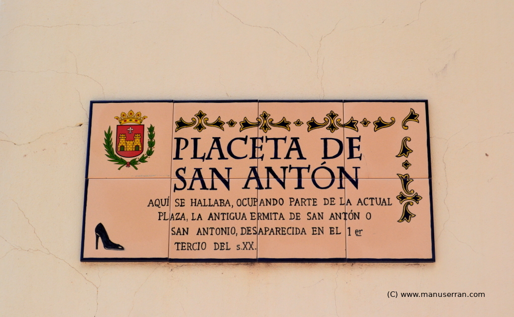 En el Libro de Visita Pastoral de 1816 se dice: “…Se halla situada a la entrada de esta Villa por la parte Norte, y se venera en ella la Imagen de dicho Santo, que es de talla, colocada en su Altar de madera…”. Se sabe que en 1751, el reverendo fray Antonio Tordera bajaba desde el Convento de Ntra. Sra. de los Ángeles a la ermita de San Antonio Abad a leer gramática (5). En 1873, Amat y Sempere (2) nos refiere: “…una dedicada a San Antonio Abad en la plazuela de su nombre… La tradición asegura que esta ermita existía ya en tiempo de los moros… (que) fue en remotos tiempos la Yglesia de los cristianos…”.