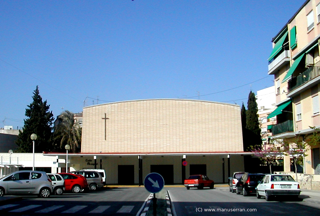 Edificio religioso diseñado como parte del equipamiento colectivo del barrio homónimo, diseñado con valores arquitectónicos propios del lenguaje del movimiento moderno que están en concordancia y adaptados a los postulados teológicos y rituales de la Iglesia Catolica postconciliar (Concilio Vaticano II). Diseño cuidado, nuevos materiales, nuevas formas y nuevas maneras de concebir el espacio religioso marcan la personalidad de este edificio (caso de la ausencia de campanario y el predominio de la horizontalidad sobre la verticalidad, características de las iglesias preconciliares), con porche con columnas metálicas de sección circular en fachada. La iglesia tiene adosados un modesto claustro, salones y antigua casa parroquial. Además, su entorno trasero incorpora, tras un patio, las antiguas escuelas y la casa del maestro…». (1)