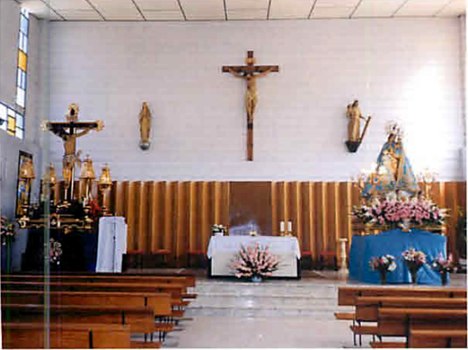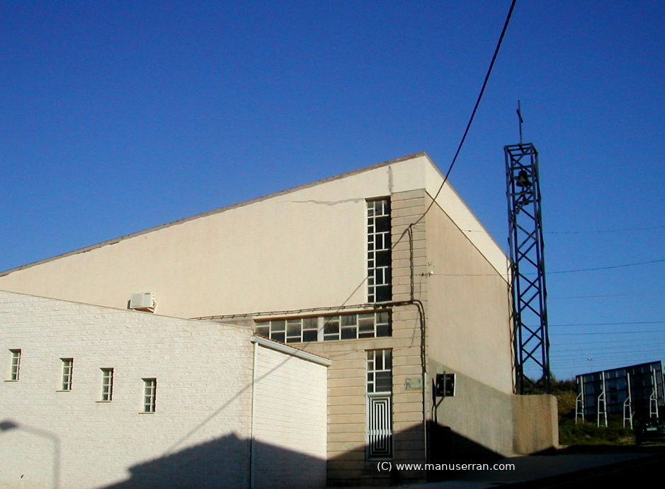 De construcción muy sencilla, a base de bloques de cemento, únicamente destaca por el campanario de estructura metálica rematado por una cruz.