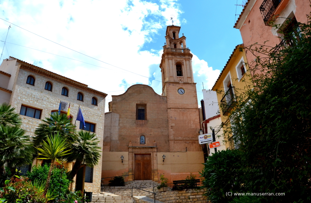 «…Finestrat o Fenestrat, es una villa de 2.700 habitantes, del arciprestazgo de Villajoyosa, que tiene la categoría de curato de ascenso de segunda, y cuyo titular es San Bartolomé Apóstol. […] En el tratado que hizo D. Jaime con el infante D. Alfonso de Castilla, el 26 de marzo de 1244, correspondió al primero la alquería de Finestrat, de la que hizo varias donaciones de tierras y casas, el 20 de julio de 1249, a Poncio Ferrer y a varios pobladores. De su castillo, del que se conservan bastantes ruinas, se apoderó el moro Alzadrach cuando se sublevó contra D. Jaime, y en 1273 lo reedificó un moro llamado Abrahin. Perteneció a Bernardo de Sarriá, de la que hizo donación al infante D. Pedro, aprobándola Jaime II en 15 de octubre de 1322, y al príncipe de Viana D. Carlos, que la vendió en 22 de octubre de 1445 a Bartolomé de Reus. Tenía el señorío, en 1609, el conde de Anna y, últimamente, el barón de Finestrat. En 1336 consta que un sacerdote decía Misa en Finestrat y otra en Relleu, los días festivos. En tiempo de Santo Tomás de Villanueva eran sus anejos Relleu y Sella. La iglesia estaba en el castillo. Teniendo el título de San Dimas y San Nicolás, y el Beato Patriarca mandó construir otra en el arrabal, pues no había ninguna, a la que debían acudir los habitantes de Cota, lugar que estaba cerca. En el castillo había entonces nueve casas de cristianos viejos, y en el arrabal 65 de moriscos. La actual iglesia se bendijo el 24 de agosto de 1751. Se celebran fiestas al titular, a San Antonio y a San Vicente Ferrer en sus días…». (2)