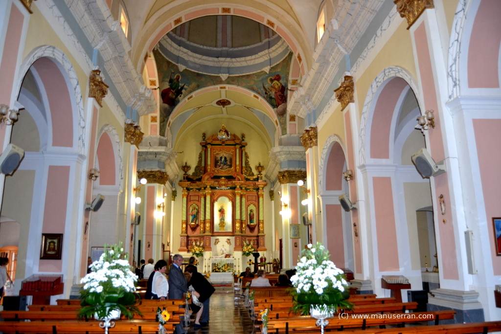 Se encuentra emplazada en la parte alta del pueblo y se accede a la misma a través de dos puertas. La planta de cruz latina y nave única posee capillas laterales entre contrafuertes. El crucero se cubre con cúpula sobre pechinas y la nave central con bóveda de cañón sobre arcos formeros.