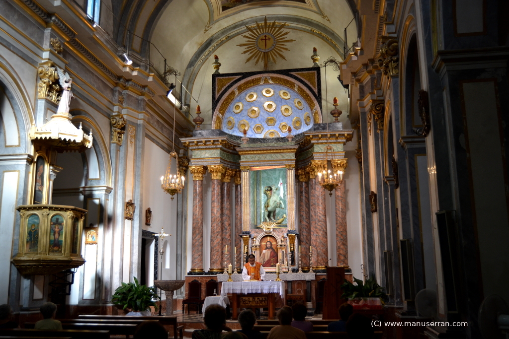«…Templo construido hacia 1526 sobre una antigua mezquita musulmana. Iglesia de pequeñas dimensiones. El exterior es pobre. El imafronte está presidido por un sencillo campanario moderno de ladrillo, rematado en piedra, con una base de tres cuerpos y un remate de dos (construido en el lugar exacto en donde se alzaba el minarete de la anterior mezquita). La fachada no tiene más que la puerta, sin portada ni elementos de piedra ornamentales o estructurales. En contraste con el exterior, el interior está ricamente ornamentado, con la particularidad de no haber sido destruido en 1936, con lo que los dorados y colores deben ser en gran parte originales del siglo XIX. La planta es rectangular y consta de una sola nave, sin crucero, cubierta por bóveda de cañón con lunetos. La nave tiene cuatro tramos, con un coro a los pies. Las capillas laterales están cubiertas por bóvedas vaídas. En un lateral se encuentra la capilla de la Comunión, con la patrona de Gayanes, la Virgen de la Luz…». (4)
