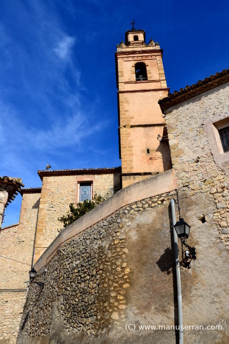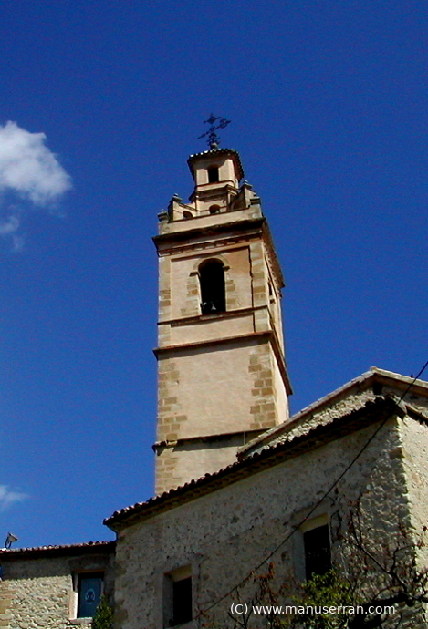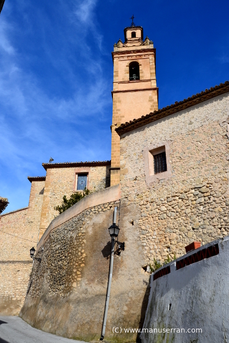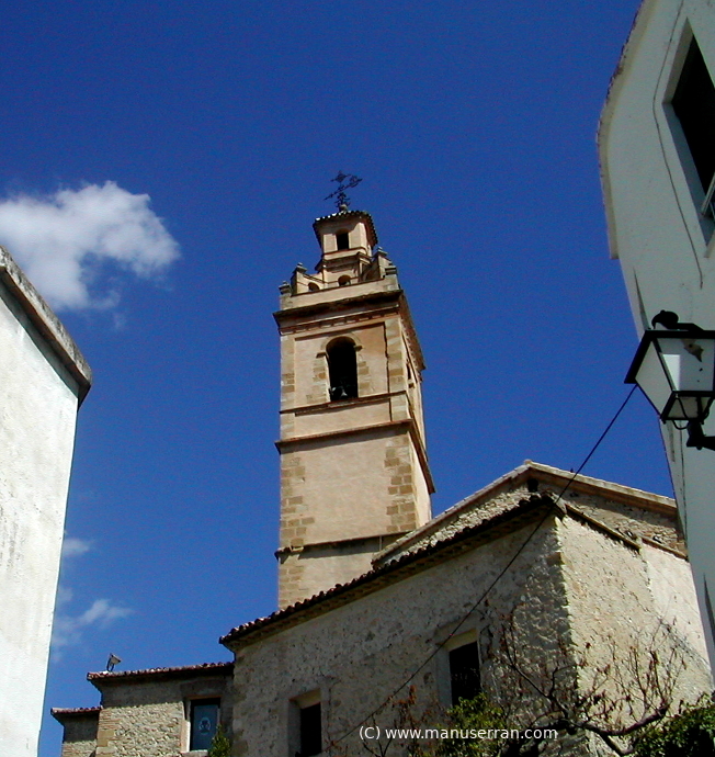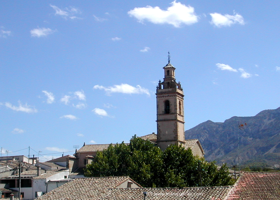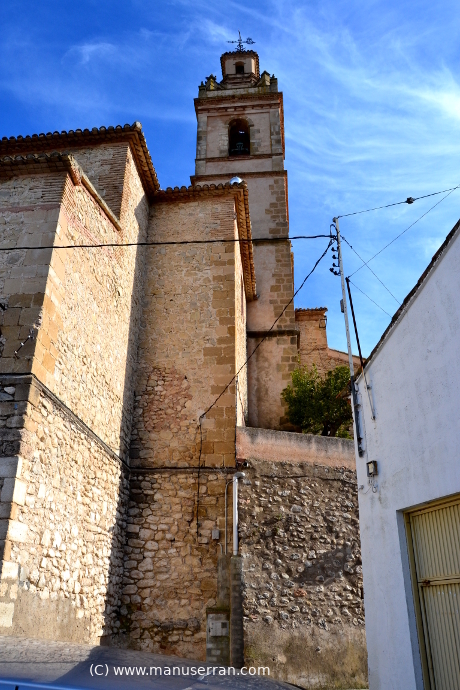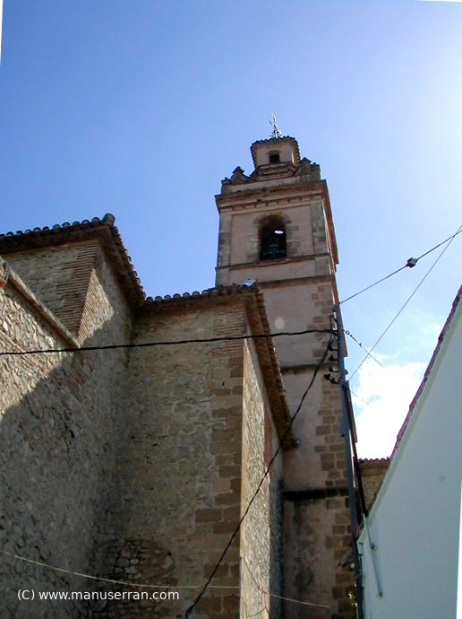 «…Construida en 1742, es curiosa la entrada a esta iglesia desde un azucaque de la calle Mayor, en lo que parece ser un resto de implantación sobre una trama urbana original morisca. La portada es de piedra, sin ornamentar, la volumetría exterior, desde fuera del pueblo, es interesante: elegante y bien proporcionada. Destaca la esbelta torre, extrañamente situada en la cabecera del templo, y el juego de volúmenes, que sobresale por encima de los tejados de las casas, con sus paramentos de mampostería vista y las esquinas de piedra o de hiladas de ladrillo. El interior corresponde a un tipo neoclásico, con nave, capillas laterales, crucero y presbiterio. La nave tiene bastante anchura, es de tres tramos y está cubierta con bóveda de cañón. Las capillas laterales están cubiertas con bóvedas vaídas, como también el crucero, que carece de cúpula. Se conserva la decoración anterior a 1936, bastante interesante, resultado de la importancia económica de la parroquia en los siglos XVIII y XIV. Fue consolidada y restaurada en 1991 por problemas originados por la apertura de la bóveda. Destaquemos las buenas pinturas al fresco relativas a las Virtudes, los Evangelistas y la vida de la Virgen María. La capilla de la Comunión anexa tiene planta de cruz griega y conserva el pavimento original; alberga la Virgen de Gracia, patrona de la villa, una buena talla del siglo XVI. El lienzo que sirve de telón del camarín es obra del pintor V. López y también representa la Virgen de Gracia…». (4)