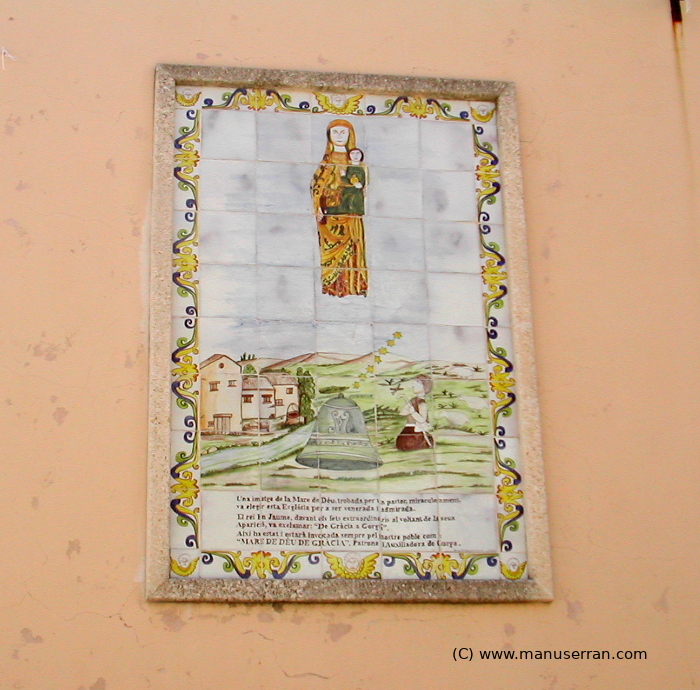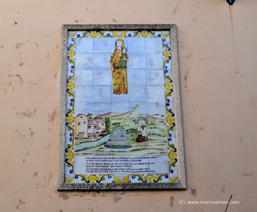 «…Gorga, Gorgo. Esta villa, de 436 habitantes, figura con el segundo nombre en el Rapartimiento, como alquería árabe in termino de Travatel, de la cual dió D. Jaime tierras y viñas en 8 de agosto de 1248, a Domingo Pérez de Olito y su mujer Gracia, y a otros. El mismo rey Conquistador le dió el título de villa. Pertenece al arciprestazgo de Concentaina, y su curato tiene la categoría de entrada, estando su iglesia dedicada a la Asunción de Nuestra Señora. En tiempo del Beato Patriarca contaba con 35 casas de cristianos viejos, lo que parece indicar que la cristiandad arranca de los tiempos de la Conquista. Entonces tenía por anejos Millena, Benilup, Benimarfull y Albacar, quitándosele los tres últimos por hallarse bastante lejos, y dejándole el primero, que aún conserva, en el que celebraba segunda Misa el párroco. La primitiva iglesia se hallaba en el sitio que ocupa hoy la abadía parroquial. La actual, que es espaciosa y magnífica, se hizo según los planos del religioso carmelita observante Fr. José Alberto Pina, y se bendijo en 18 de abril de 1745. Las pinturas las hizo en 1815 el artista Venancio Pla, domiciliado en Albaida. En la capilla de la Comunión, que es obra posterior al templo, se venera la imagen de la patrona, Nuestra Señora de Gracia, sobre cuyo hallazgo existe una piadosa y poética leyenda: se le cantan unos gozos escritos en castellano, que reseñan la historia. Tuvo dos beneficios, hoy incongruos por la desamortización, y cuenta con una ermita dedicada a Nuestra Señora de Gracia, en cuyo honor se celebran fiestas el 8 de septiembre, lo mismo que al patrono, que es San Blas, en su día. Perteneció, en el siglo XIV, a la familia de Roger de Lauria y después al marqués de Guadalest, teniendo últimamente el señorío el marques de Ariza…». (3)