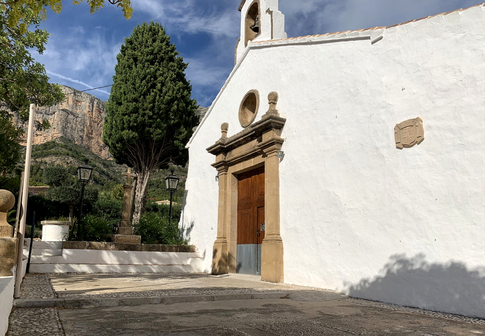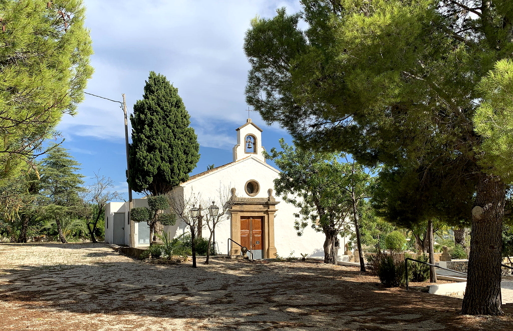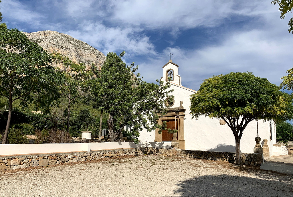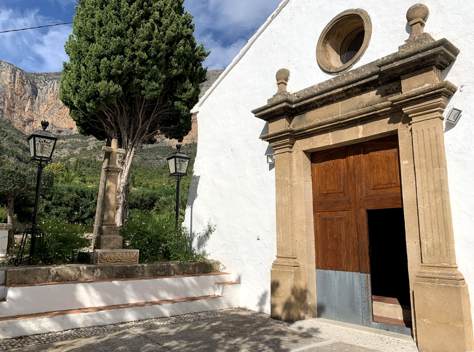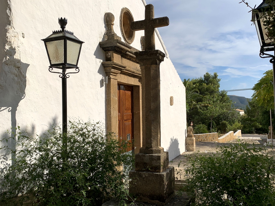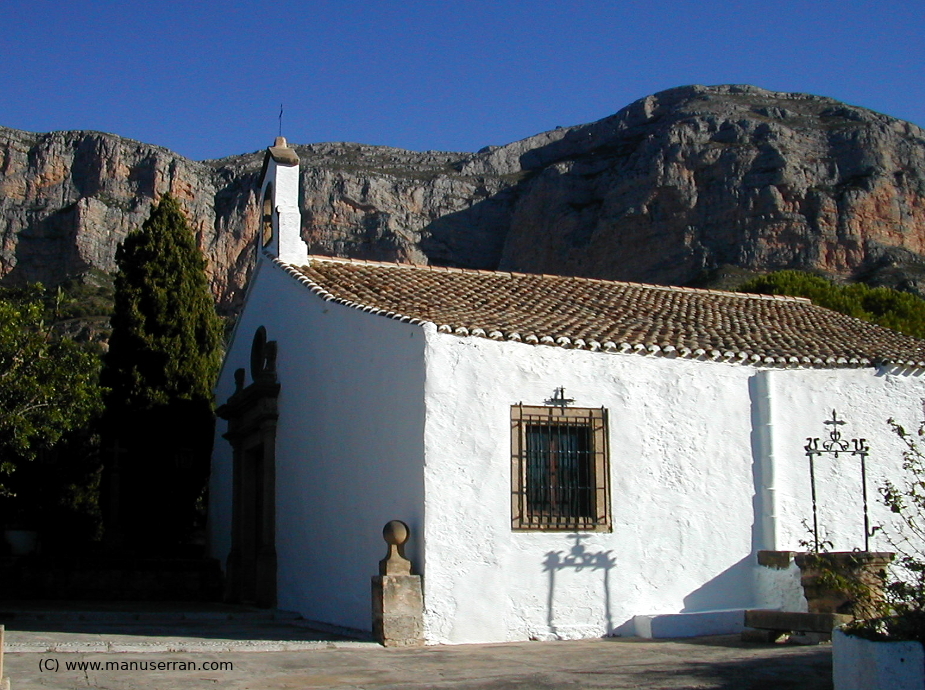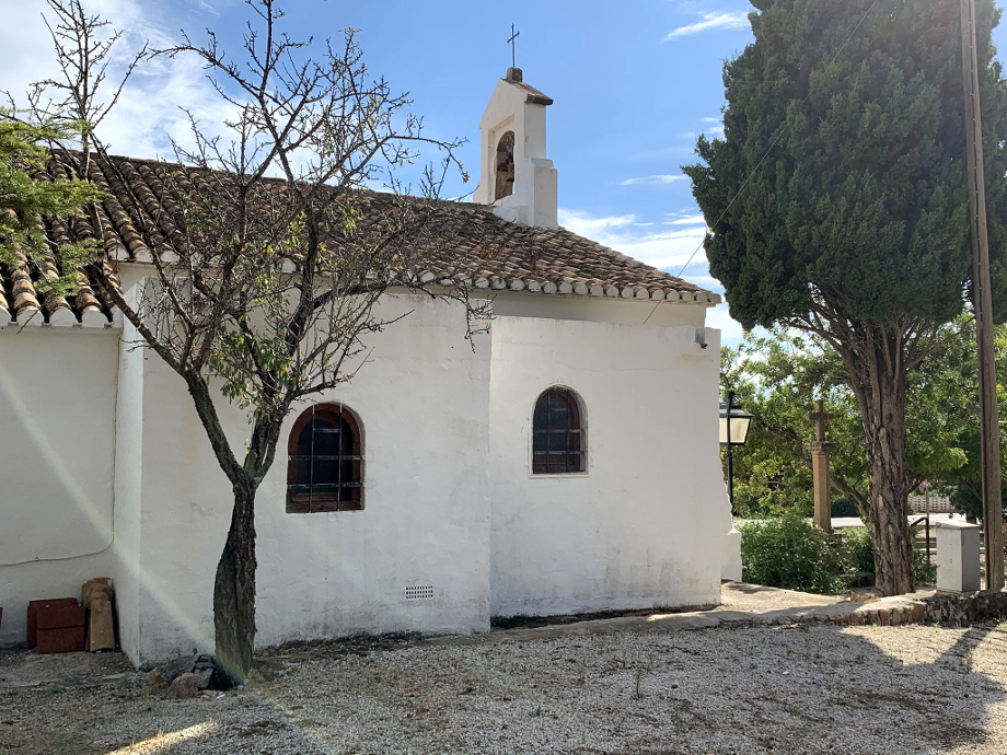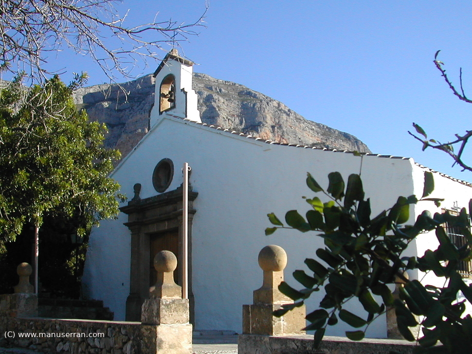 «…Denominada popularmente “Ermita del Pòpul”, se localiza a unos 3.400 metros del núcleo urbano de Jávea, al margen de la carretera que conduce a Jesús Pobre, CV-735, en un entorno anteriormente de carácter rural y actualmente muy urbanizado.