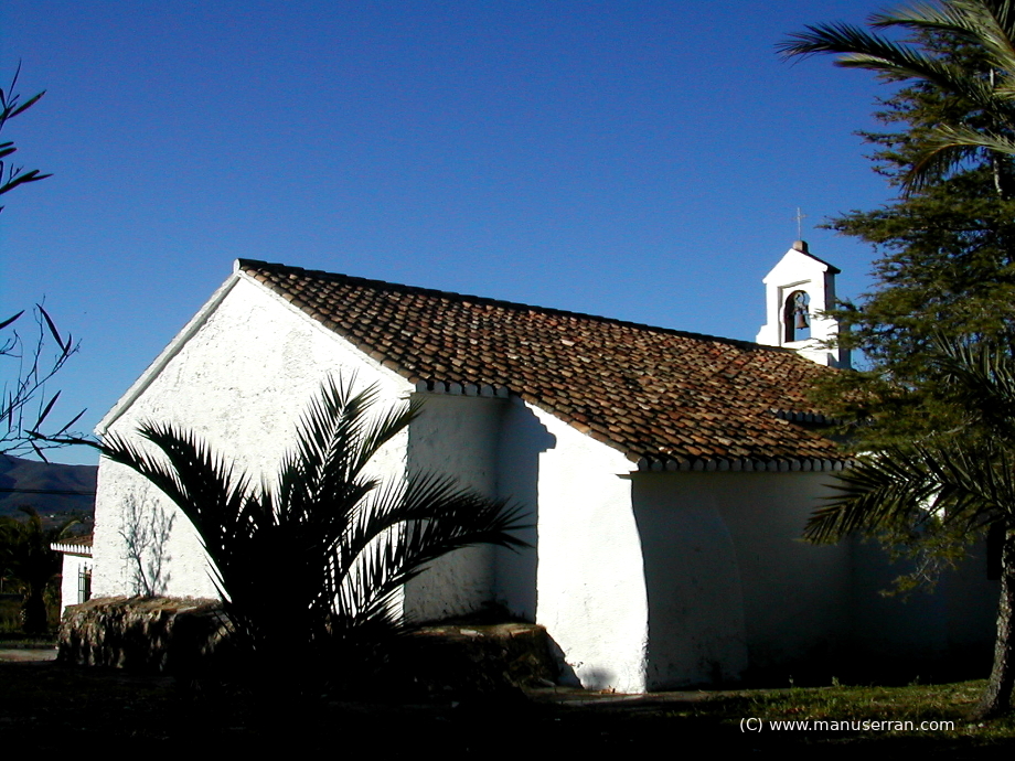«…La fecha de construcción no se sabe documentalmente pero, por sus características, la primitiva estructura sería de los siglos XIV-XV. Se trataría de una de las ermitas llamadas de conquista, aunque el edificio ha tenido reformas y adaptaciones posteriores, sobre todo en el siglo XVIII. Construido con muros y contrafuertes de mampostería y cubierta a dos vertientes sobre armazón de madera. La fachada es pentagonal, extendiéndose a la derecha comprendiendo la casa del ermitaño; muestra una portada renacentista en piedra tosca: dos pilastras acanaladas con plinto y capitel dórico, entablamento y pináculos en bola en los extremos y vano dintelado; sobre ella óculo redondo, frontón despejado y espadaña con estribos, hueco de medio punto y tejadillo a dos vertientes. Todos estos elementos proceden de la reforma posterior del siglo XVIII, igual a los añadidos a la planta: casa del ermitaño, sacristía y coro.