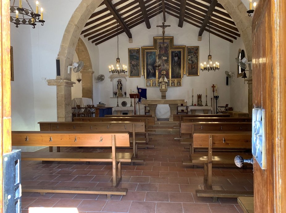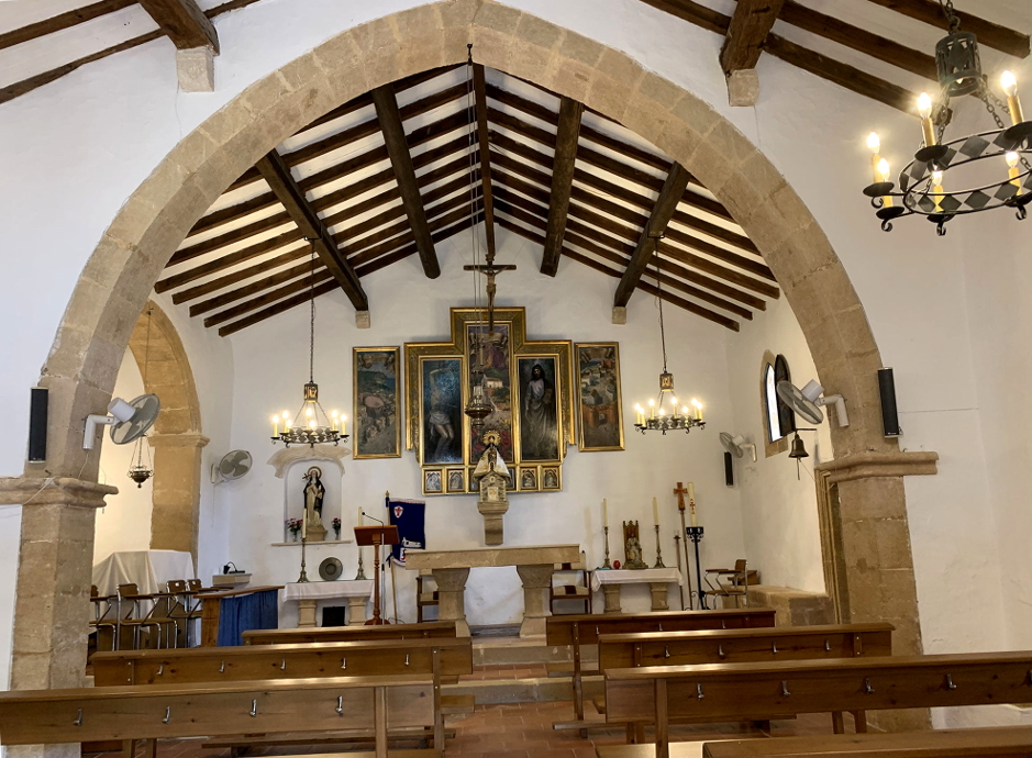 Se vuelve a repetir aquí el esquema constructivo, ya visto en las iglesias de Santa Lucía y San Juan, con un gran arco interior de piedra tosca, en este caso apuntado.