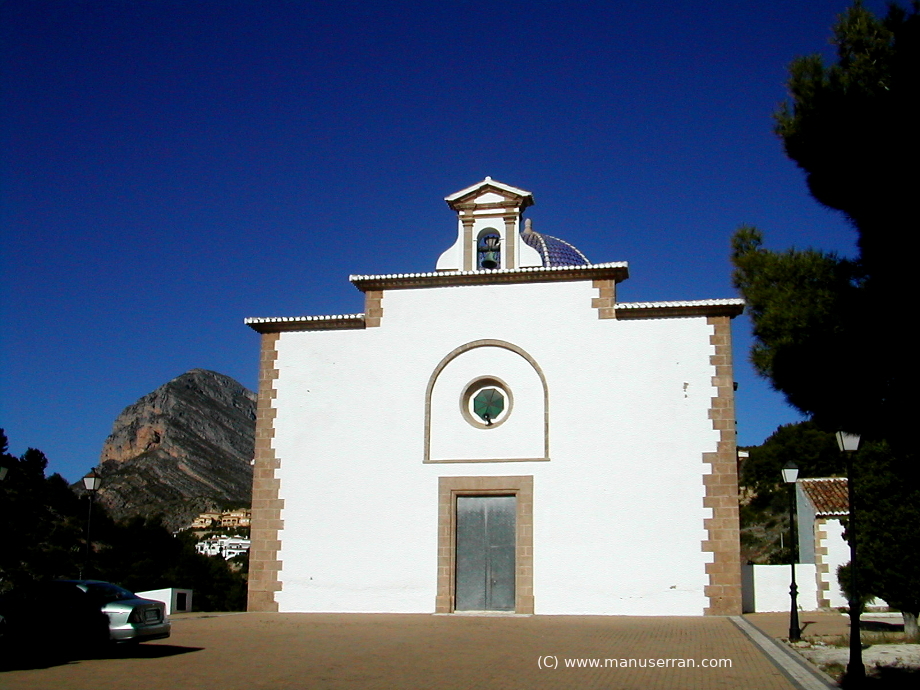 Citada por Madoz: “…a la parte Noroeste de este [pueblo] se forma una eminencia que tiene su raiz en la cordillera que desde el Mongó corre hasta el cabo de San Antonio: sobre ella existe el calvario y la capilla donde se venera la imagen de Jesús Nazareno. Todo el tránsito ó camino por donde se adora el Via-Crucis, está plantado de hermosos cipreses, presentando aquel recinto una vista agradable…”. (1)